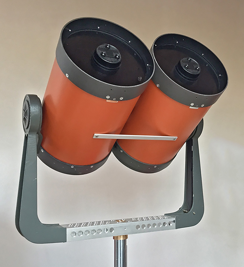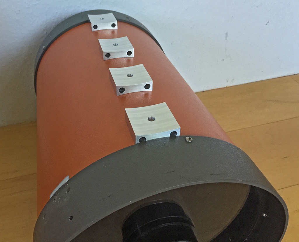 Beim C11 reichte es die originalen Tubushalter zu kuerzen damit das Bino im Gleichgewicht ist. Unter den Tuben ist die Stabilisierungsstange zu sehen.