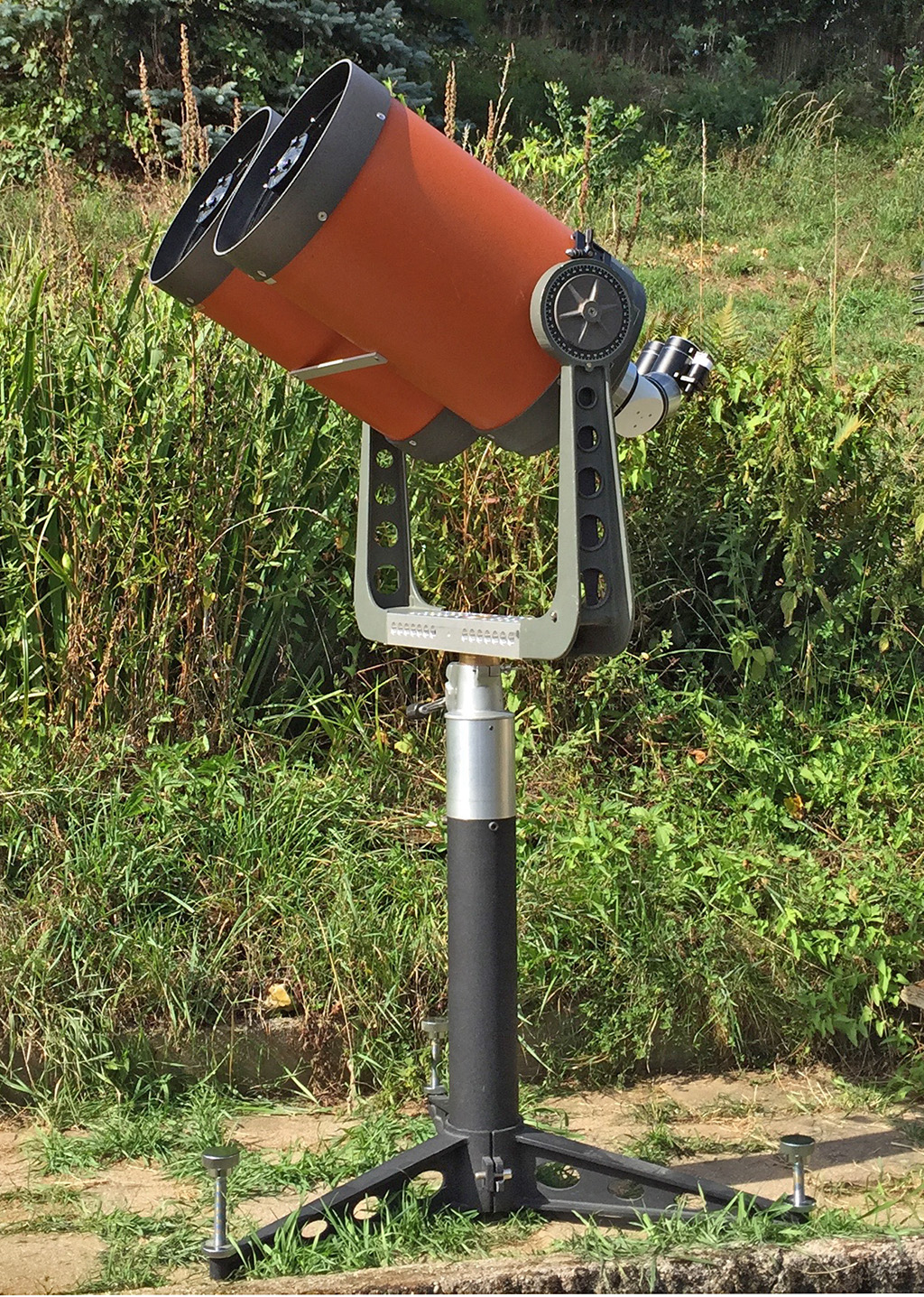 Das Doppelteleskop wiegt mit Gabel, EMS und Fokussierern nur 35 Kilogramm, dadurch ist noch gut alleine zu tragen und auf die Saeule zu heben.
